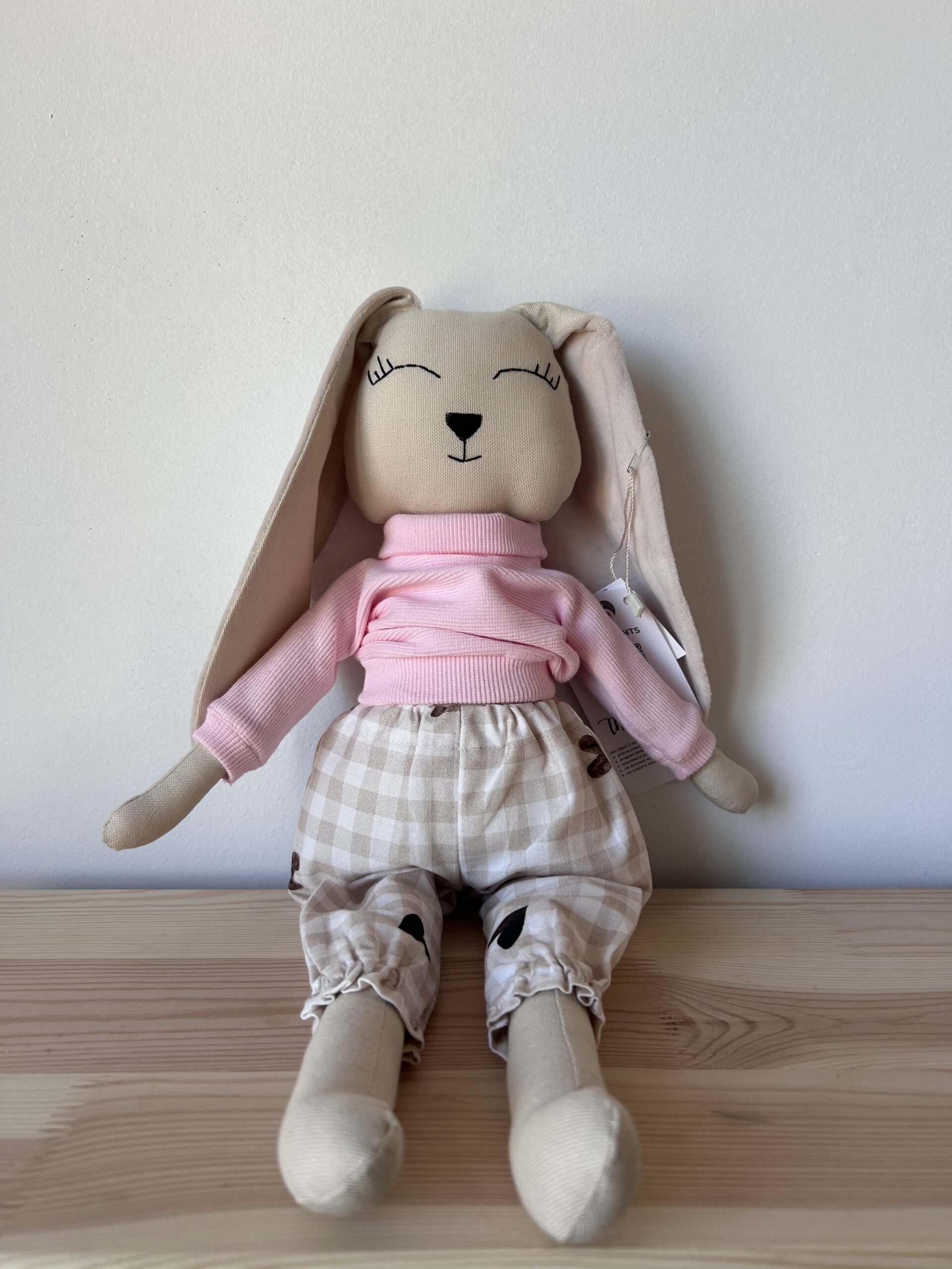 Wykonana z naturalnych tkanin, aby była w pełni bezpieczna i niezwykle przyjemna w dotyku. Jej wysokość (55 cm) sprawia, że jest idealna do tulenia, a autorskie wzory ubranek nadają jej luksusowy i artystyczny charakter.