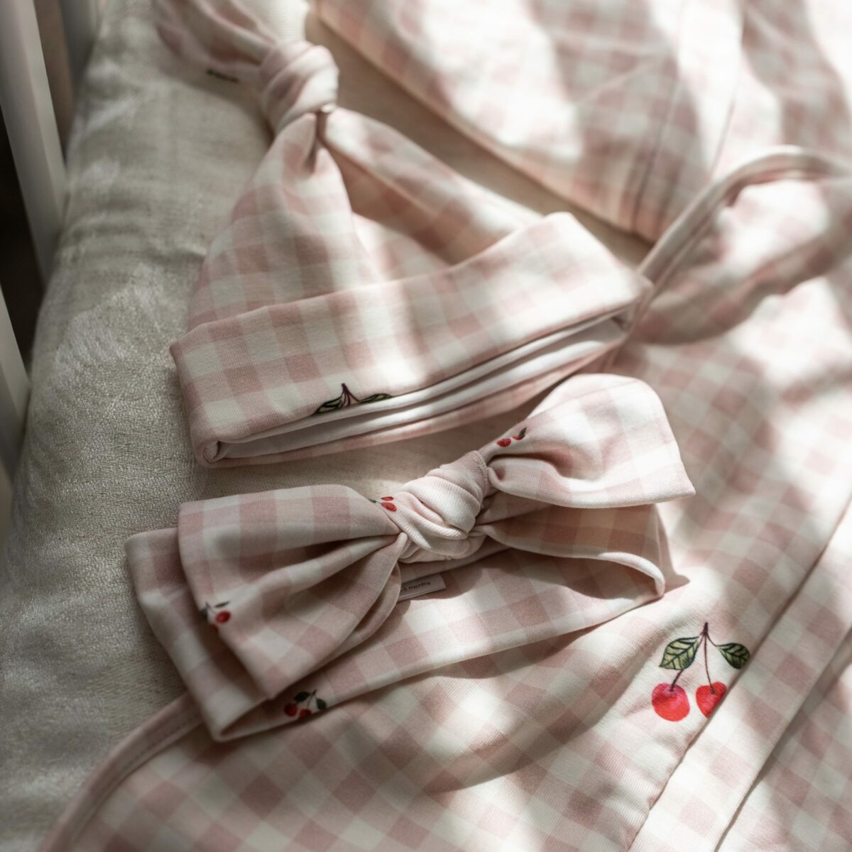 Tylko teraz w zestawie z otulaczem urocza czapeczka. Niezbędnik na główkę każdego noworodka.